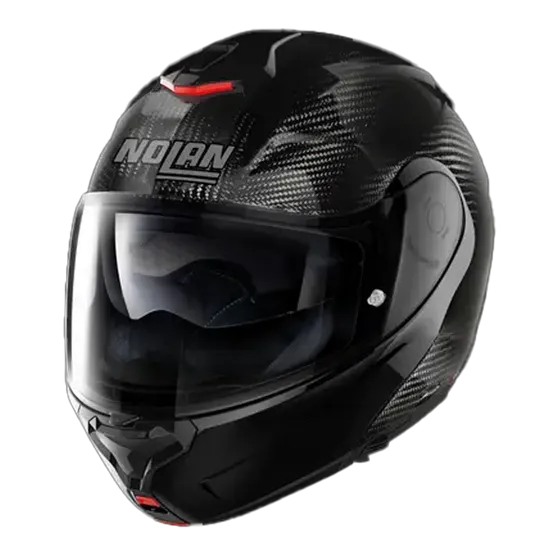 This is Nolan's exclusive high-carbon content version of the new flip up helmet. It is characterised by an elegant and dynamic design, a striking appearance and an ample range of technical features, some of which are highly innovative. Carbon-rich construction, three outer shell sizes, double P/J homologation, ultrawide visor, VPS sunscreen (adjustable in various positions and fitted with the automatic retraction system), rotation of the chin guard with elliptical trajectory, exclusive double action chin guard opening mechanism, double lever Microlock2 retention system with micrometric adjustment, Carbon Fitting Racing Experience inner comfort padding (with an innovative net construction), exclusive Liner Positioning Control (LPC) system and set-up for the new generation N-Com communication system make the X-1005 ULTRA CARBON the most exclusive flip up helmet for the most demanding of motorbike tourists.